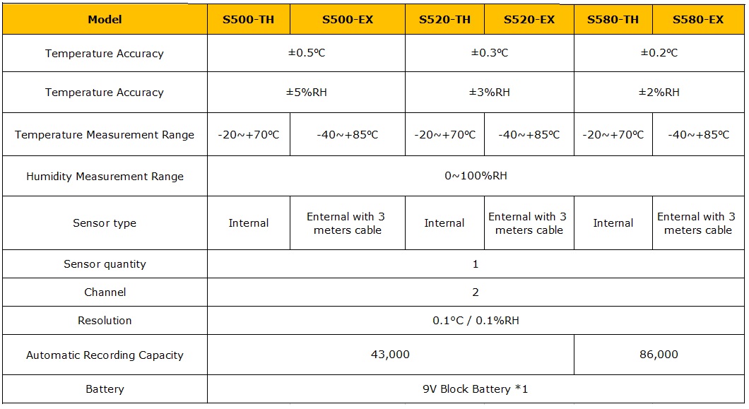 S500 series data logger build-in sound and light alarm function, that will alarm when exceed limit